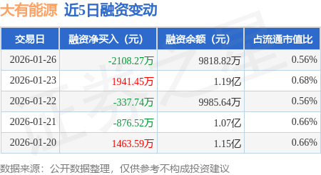证券之星消息,1月26日,大有能源(600403)融资买入2743.38万元,融资偿还4851.65万元,融资净卖出2108.27万元,融资余额9818.82万元。