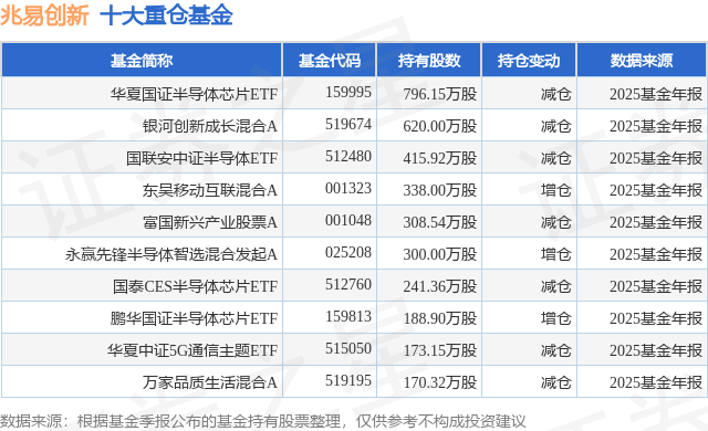 根据2025基金年报公募基金重仓股数据,重仓该股的公募基金共396家,其中持有数量最多的公募基金为华夏基金的华夏国证半导体芯片ETF。华夏国证半导体芯片ETF目前规模为251.97亿元,最新净值1.9994(1月26日),较上一交易日下跌2.12%,近一年上涨64.55%。该公募基金现任基金经理为赵宗庭。赵宗庭在任的基金产品包括:华夏沪深300ETF联接A,管理时间为2017年4月17日至今,期间收益率为58.26%;华夏沪深300ETF,管理时间为2017年4月17日至今,期间收益率为59.91%;华夏野村日经225ETF,管理时间为2019年6月12日至今,期间收益率为83.92%;