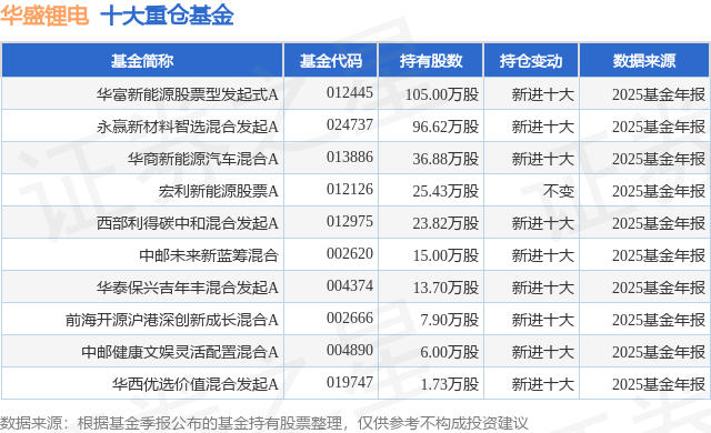 重仓华盛锂电的前十大公募基金请见下表: