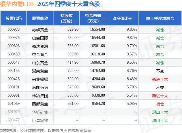 根据2025基金年报公募基金重仓股数据,重仓该股的公募基金共46家,其中持有数量最多的公募基金为银华基金的银华内需LOF。银华内需LOF目前规模为16.85亿元,最新净值5.477(1月26日),较上一交易日上涨6.16%,近一年上涨118.21%。该公募基金现任基金经理为王利刚。王利刚在任的基金产品包括:银华成长先锋混合,管理时间为2019年12月31日至今,期间收益率为55.65%;银华创业板两年定期开放混合,管理时间为2020年8月7日至今,期间收益率为-9.09%;银华同力精选混合,管理时间为2021年4月26日至今,期间收益率为63.33%;