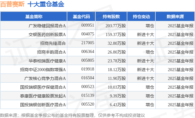 重仓百普赛斯的前十大公募基金请见下表: