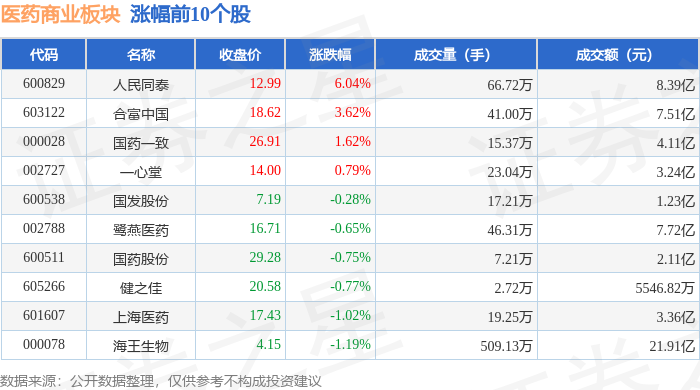 证券之星消息,1月27日医药商业板块较上一交易日下跌1.77%,漱玉平民领跌。当日上证指数报收于4139.9,上涨0.18%。深证成指报收于14329.91,上涨0.09%。医药商业板块个股涨跌见下表: