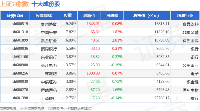 证券之星消息,1月27日,上证50(000016)指数报收于3052.39点,涨0.09%,成交2023.27亿元,换手率0.45%。当日该指数成份股中,上涨的有17家,中国人寿以3.35%的涨幅领涨,下跌的有33家,陕西煤业以2.65%的跌幅领跌。