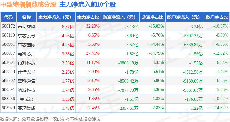 资金流向方面,中型综指(000020)指数成份股当日主力资金净流出合计20.94亿元,游资资金净流出合计17.07亿元,散户资金净流入合计38.01亿元。成份股资金流向详情见下表: