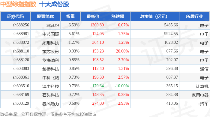 证券之星消息,1月27日,中型综指(000020)指数报收于1871.29点,涨1.33%,成交2882.35亿元,换手率3.15%。当日该指数成份股中,上涨的有404家,东芯股份以20.0%的涨幅领涨,下跌的有510家,淳中科技以10.0%的跌幅领跌。