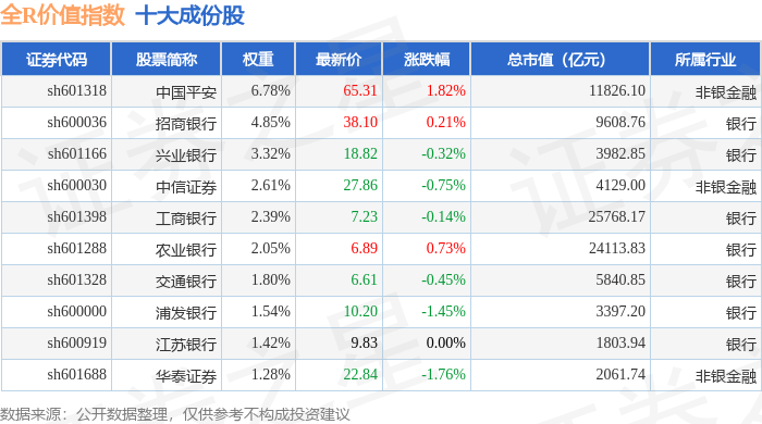 全R价值(000060)指数十大成份股详情如下: