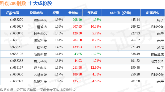 科创200(000699)指数十大成份股详情如下: