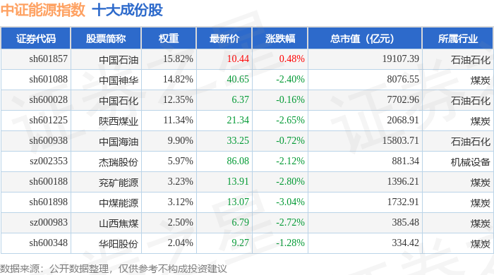 资金流向方面,中证能源(000928)指数成份股当日主力资金净流出合计2.54亿元,游资资金净流入合计3.44亿元,散户资金净流出合计8975.12万元。成份股资金流向详情见下表: