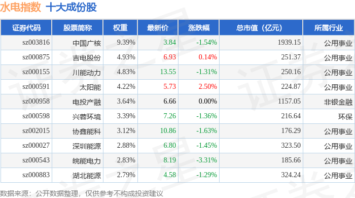 水电指数(399234)十大成份股详情如下: