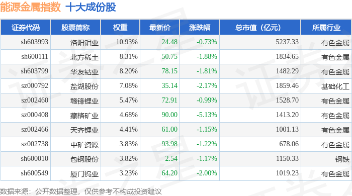 资金流向方面,能源金属(399366)指数成份股当日主力资金净流出合计54.27亿元,游资资金净流入合计13.81亿元,散户资金净流入合计40.41亿元。成份股资金流向详情见下表: