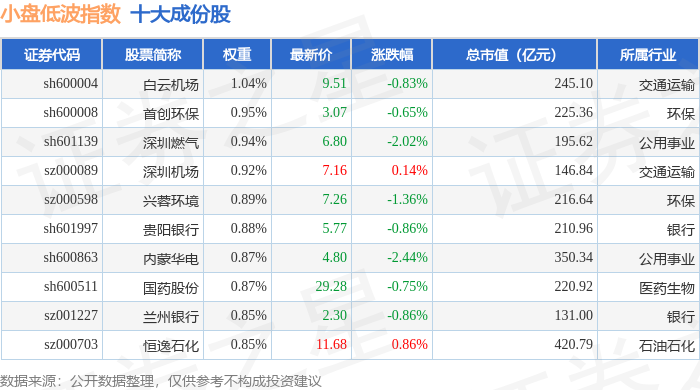 小盘低波(399408)指数十大成份股详情如下: