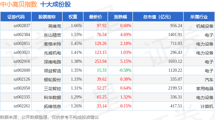 中小高贝(399664)指数十大成份股详情如下:
