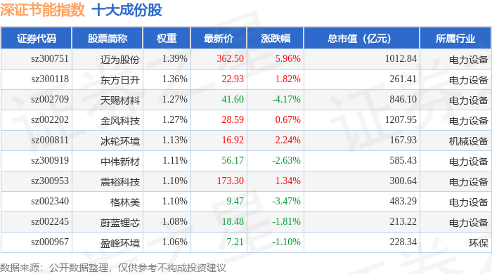 深证节能(399695)指数十大成份股详情如下:
