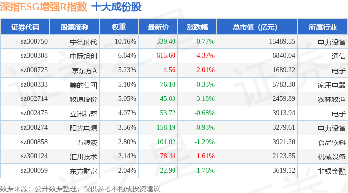 深指ESG增强R(470032)指数十大成份股详情如下: