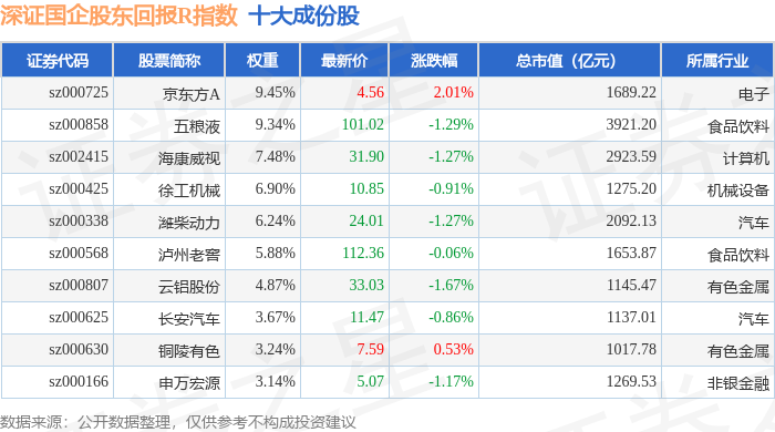 深证国企股东回报R(470064)指数十大成份股详情如下: