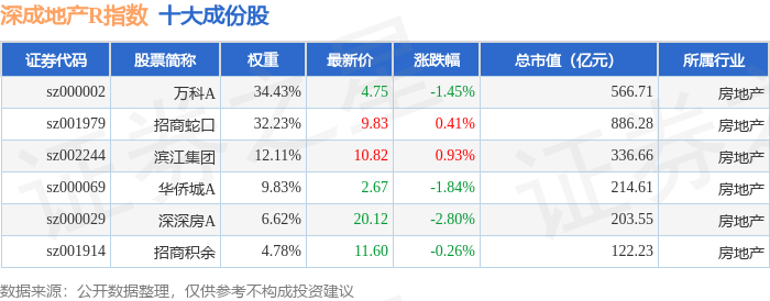 深成地产R(471001)指数十大成份股详情如下: