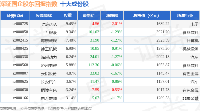 深证国企股东回报(970064)指数十大成份股详情如下: