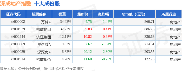深成地产(971001)指数十大成份股详情如下: