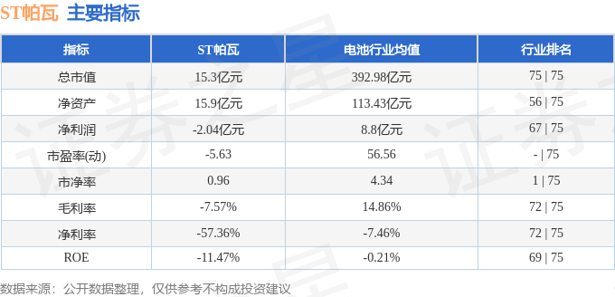 ST帕瓦2025年三季报显示,前三季度公司主营收入3.56亿元,同比下降54.25%;归母净利润-2.04亿元,同比上升53.69%;扣非净利润-2.0亿元,同比上升55.01%;其中2025年第三季度,公司单季度主营收入1.16亿元,同比下降40.01%;单季度归母净利润-4550.14万元,同比上升57.08%;单季度扣非净利润-3876.62万元,同比上升63.26%;负债率20.95%,投资收益-84.53万元,财务费用-303.9万元,毛利率-7.57%。ST帕瓦(688184)主营业务:新能源电池材料的研发、生产和销售,专注于锂离子电池、钠离子电池正极材料细分方向,并积极布局半固态/固态电池等前瞻领域。
