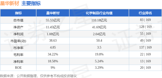 该股主要指标及行业内排名如下: