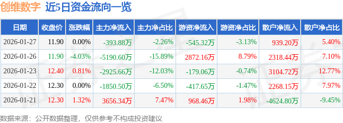 证券之星消息,截至2026年1月27日收盘,创维数字(000810)报收于11.9元,上涨0.0%,换手率1.33%,成交量14.78万手,成交额1.74亿元。