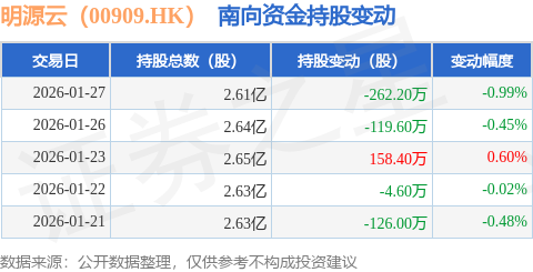 证券之星消息,1月27日南向资金减持262.2万股明源云(00909.HK)。近5个交易日中,获南向资金减持的有4天,累计净减持354.0万股。近20个交易日中,获南向资金减持的有17天,累计净减持2848.5万股。截至目前,南向资金持有明源云(00909.HK)2.61亿股,占公司已发行普通股的13.49%。