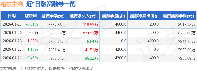 苑东生物融资融券信息显示,融资方面,当日融资买入446.75万元,融资偿还328.17万元,融资净买入118.57万元。融券方面,融券卖出200.0股,融券偿还0.0股,融券余量4600.0股,融券余额25.92万元。融资融券余额8913.78万元。