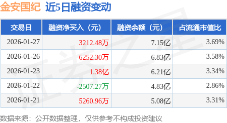 证券之星消息,1月27日,金安国纪(002636)融资买入1.53亿元,融资偿还1.21亿元,融资净买入3212.48万元,融资余额7.15亿元,近3个交易日已连续净买入累计2.33亿元,近20个交易日中有11个交易日出现融资净买入。