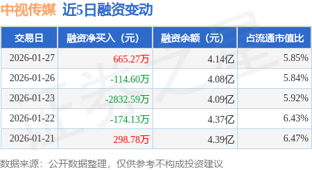 证券之星消息,1月27日,中视传媒(600088)融资买入2258.37万元,融资偿还1593.1万元,融资净买入665.27万元,融资余额4.14亿元,近20个交易日中有15个交易日出现融资净买入。