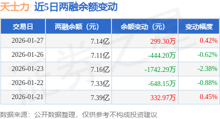 证券之星消息,1月27日,天士力(600535)融资买入2031.25万元,融资偿还1733.68万元,融资净买入297.57万元,融资余额7.13亿元。