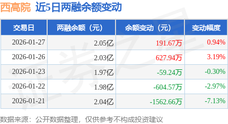 证券之星消息,1月27日,西高院(688334)融资买入2890.06万元,融资偿还2682.78万元,融资净买入207.28万元,融资余额2.05亿元,近20个交易日中有12个交易日出现融资净买入。