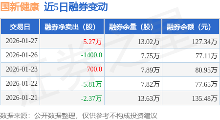 证券之星消息,1月27日,国新健康(000503)融资买入2579.11万元,融资偿还2476.85万元,融资净买入102.26万元,融资余额5.71亿元,近20个交易日中有12个交易日出现融资净买入。