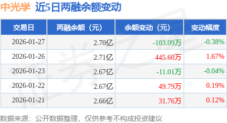 证券之星消息,1月27日,中光学(002189)融资买入933.1万元,融资偿还1036.24万元,融资净卖出103.14万元,融资余额2.7亿元。