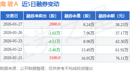 融券方面,当日融券卖出2800.0股,融券偿还0.0股,融券净卖出2800.0股,融券余量8.24万股。