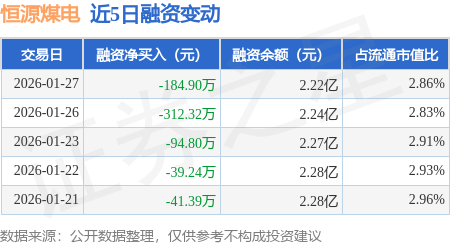 证券之星消息,1月27日,恒源煤电(600971)融资买入731.25万元,融资偿还916.15万元,融资净卖出184.9万元,融资余额2.22亿元。