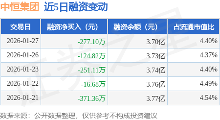 证券之星消息,1月27日,中恒集团(600252)融资买入930.09万元,融资偿还1207.19万元,融资净卖出277.1万元,融资余额3.7亿元。