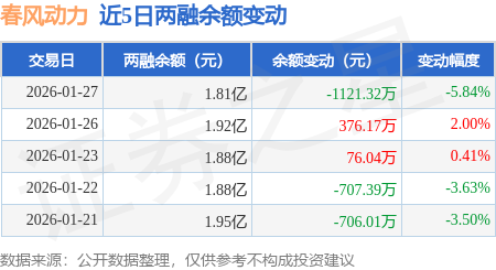 证券之星消息,1月27日,春风动力(603129)融资买入844.64万元,融资偿还2029.07万元,融资净卖出1184.42万元,融资余额1.74亿元。