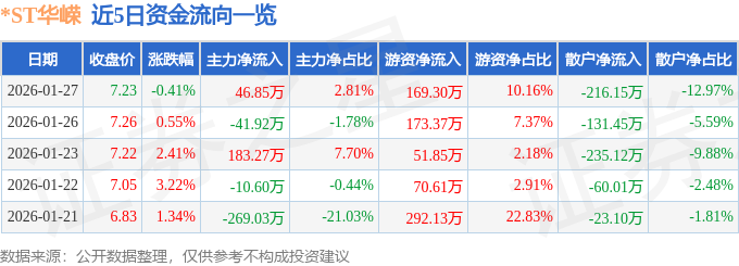 1月27日的资金流向数据方面,主力资金净流入46.85万元,占总成交额2.81%,游资资金净流入169.3万元,占总成交额10.16%,散户资金净流出216.15万元,占总成交额12.97%。