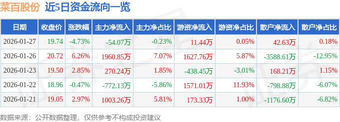 1月27日的资金流向数据方面,主力资金净流出54.07万元,占总成交额0.23%,游资资金净流入11.44万元,占总成交额0.05%,散户资金净流入42.63万元,占总成交额0.18%。