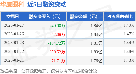 证券之星消息,1月27日,华厦眼科(301267)融资买入1231.83万元,融资偿还1271.91万元,融资净卖出40.08万元,融资余额1.84亿元。