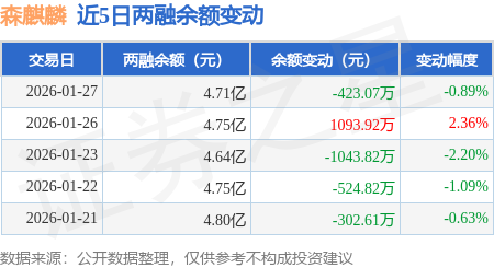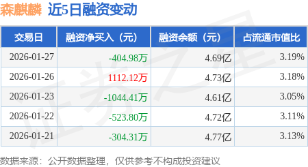 证券之星消息,1月27日,森麒麟(002984)融资买入2089.9万元,融资偿还2494.88万元,融资净卖出404.98万元,融资余额4.69亿元。