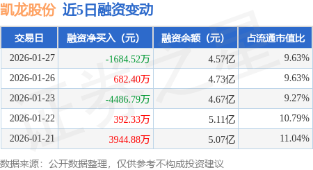 证券之星消息,1月27日,凯龙股份(002783)融资买入3501.59万元,融资偿还5186.12万元,融资净卖出1684.52万元,融资余额4.57亿元,近20个交易日中有12个交易日出现融资净买入。