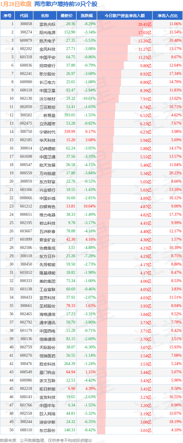 两市散户增持最多的前十只个股为: