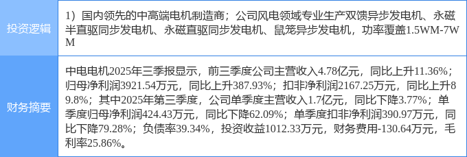 证券之星消息,中电电机1月28日涨停收盘,收盘价38.13元。该股于9点58分涨停,3次打开涨停,截止收盘封单资金为1190.8万元,占其流通市值0.13%。