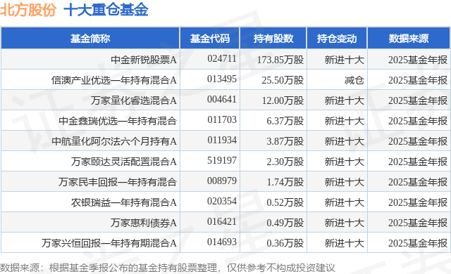 重仓北方股份的前十大公募基金请见下表: