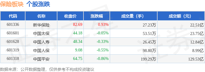 证券之星消息,1月28日保险板块较上一交易日下跌0.38%,中国平安领跌。当日上证指数报收于4151.24,上涨0.27%。深证成指报收于14342.9,上涨0.09%。保险板块个股涨跌见下表: