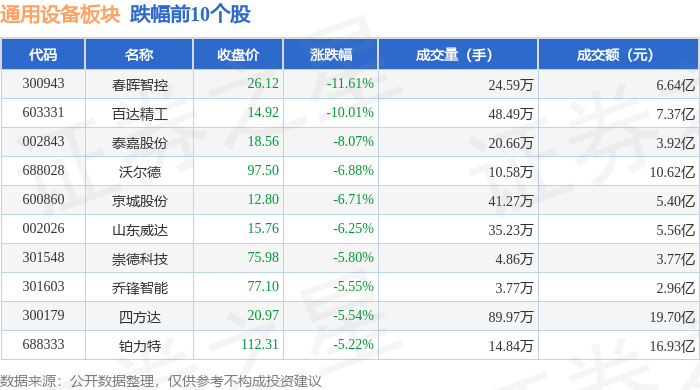 证券之星消息,1月28日通用设备板块较上一交易日下跌1.05%,春晖智控领跌。当日上证指数报收于4151.24,上涨0.27%。深证成指报收于14342.9,上涨0.09%。通用设备板块个股涨跌见下表: