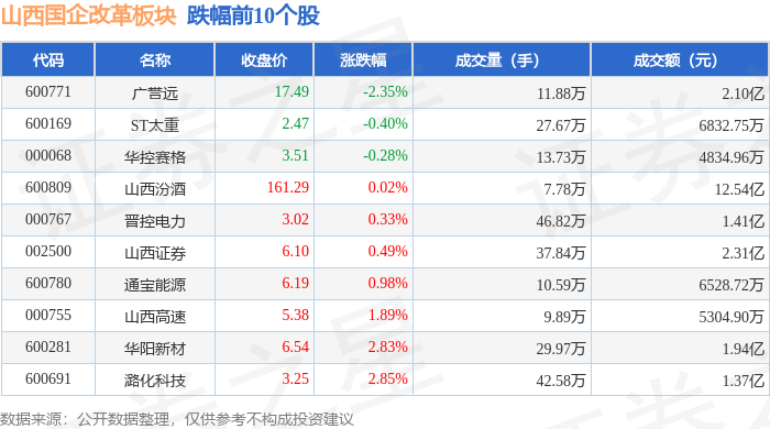 从资金流向上来看,当日山西国企改革板块主力资金净流入10.75亿元,游资资金净流出2.67亿元,散户资金净流出8.07亿元。山西国企改革板块个股资金流向见下表:
