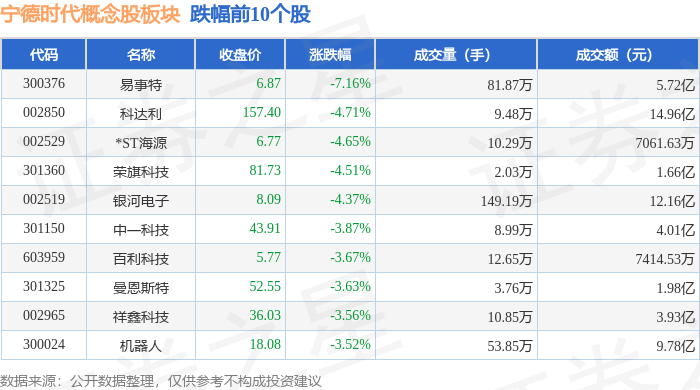 从资金流向上来看,当日宁德时代概念股板块主力资金净流出29.23亿元,游资资金净流入2.55亿元,散户资金净流入26.68亿元。宁德时代概念股板块个股资金流向见下表:
