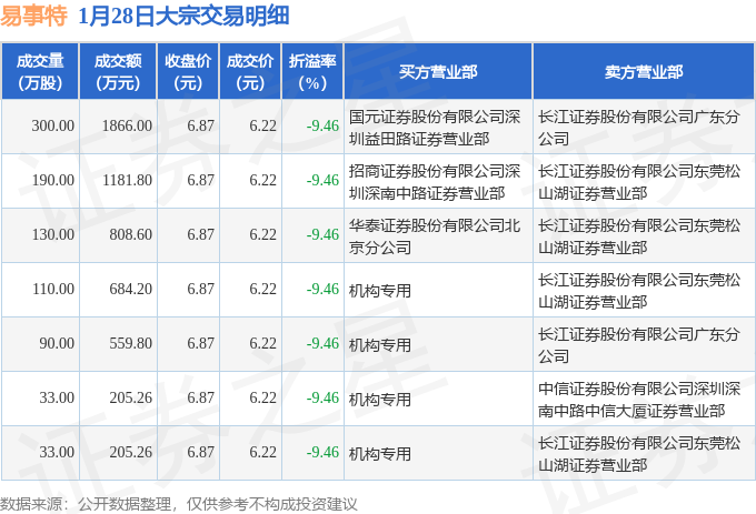 证券之星消息,1月28日易事特发生大宗交易,交易数据如下: